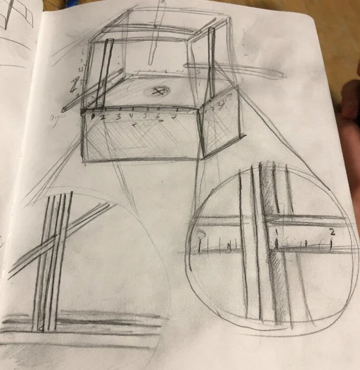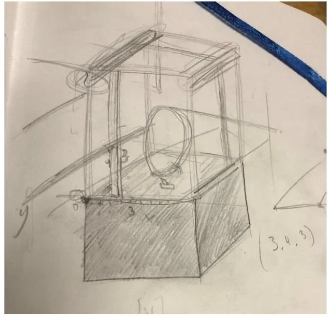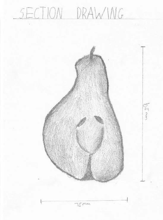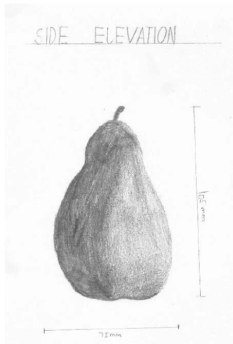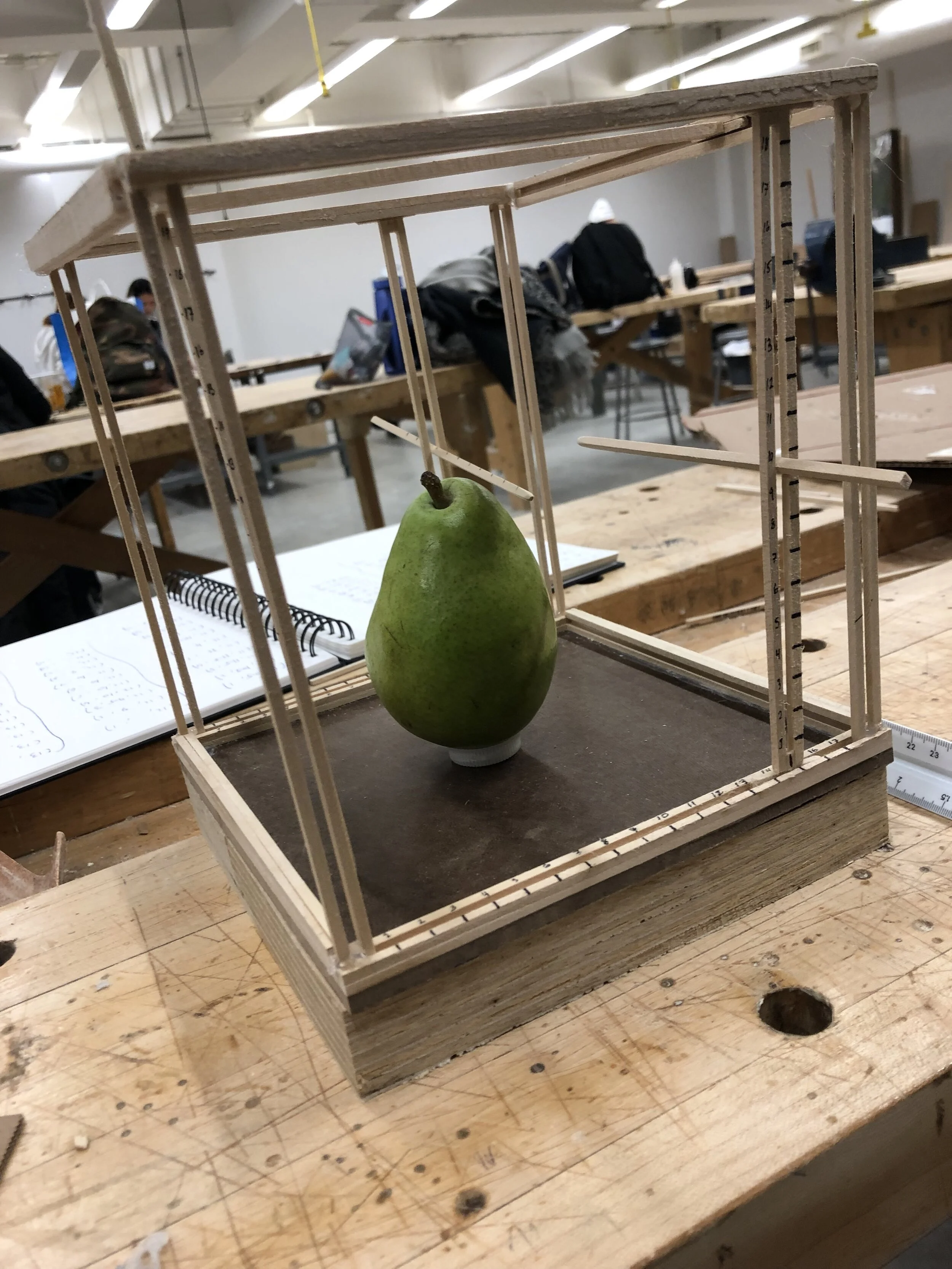 The objective of this project was to design and fabricate a measuring machine. This project focuses on the spatial translation from three dimensions to two dimensions and involves the accurate measuring and transcription of measured objects onto a drawing space. I designed and built a system to accurately draw and measure a fruit (pear). The machine is able to transcribe the information of the tangible object (fruit) into a two-dimensional drawing. I wanted to design something that related to a graph, corresponding to the (x,y,z) concept. It is easy and user friendly. To use, one would set the x value first, then move up a z value, poke for y, and then move up the z value and continue until y has no more values. After that, they would switch the x value and repeat the process. Thereafter, one would plot their coordinates on Rhino to start planning their 2d drawing